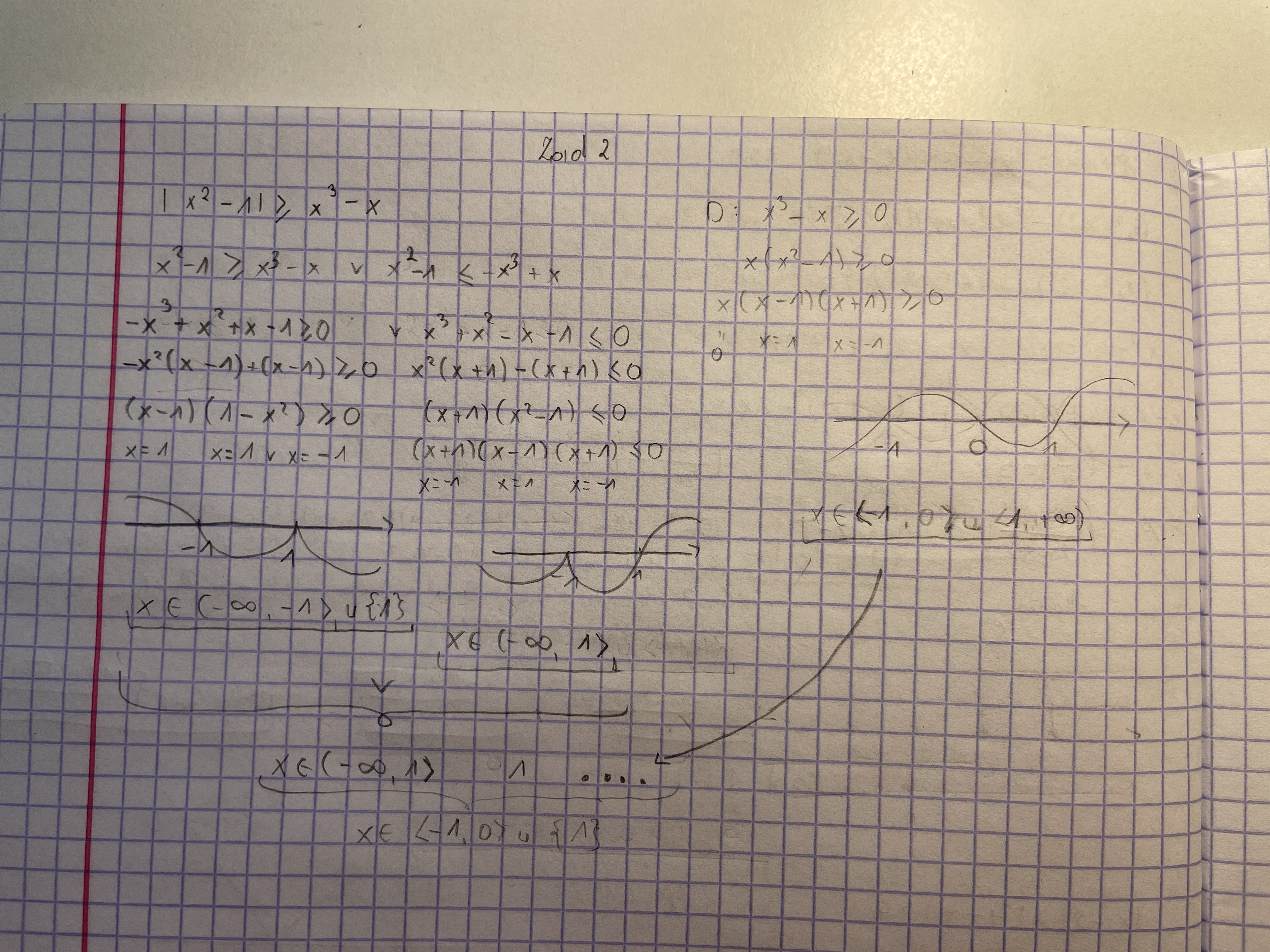 pochodna ilość rozwiązań równaniaCzy mógłby mi ktoś pomóc znaleźć w moim rozwiązaniu błąd? Nie wiem dlaczego nie wychodzi, wydaje mi się że coś jest nie tak z dziedziną, bo po połączeniu jej z wynikiem wychodzi inny wynik niż w odpowiedziach. Z góry dziękuję za pomoc.